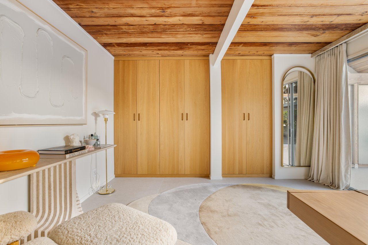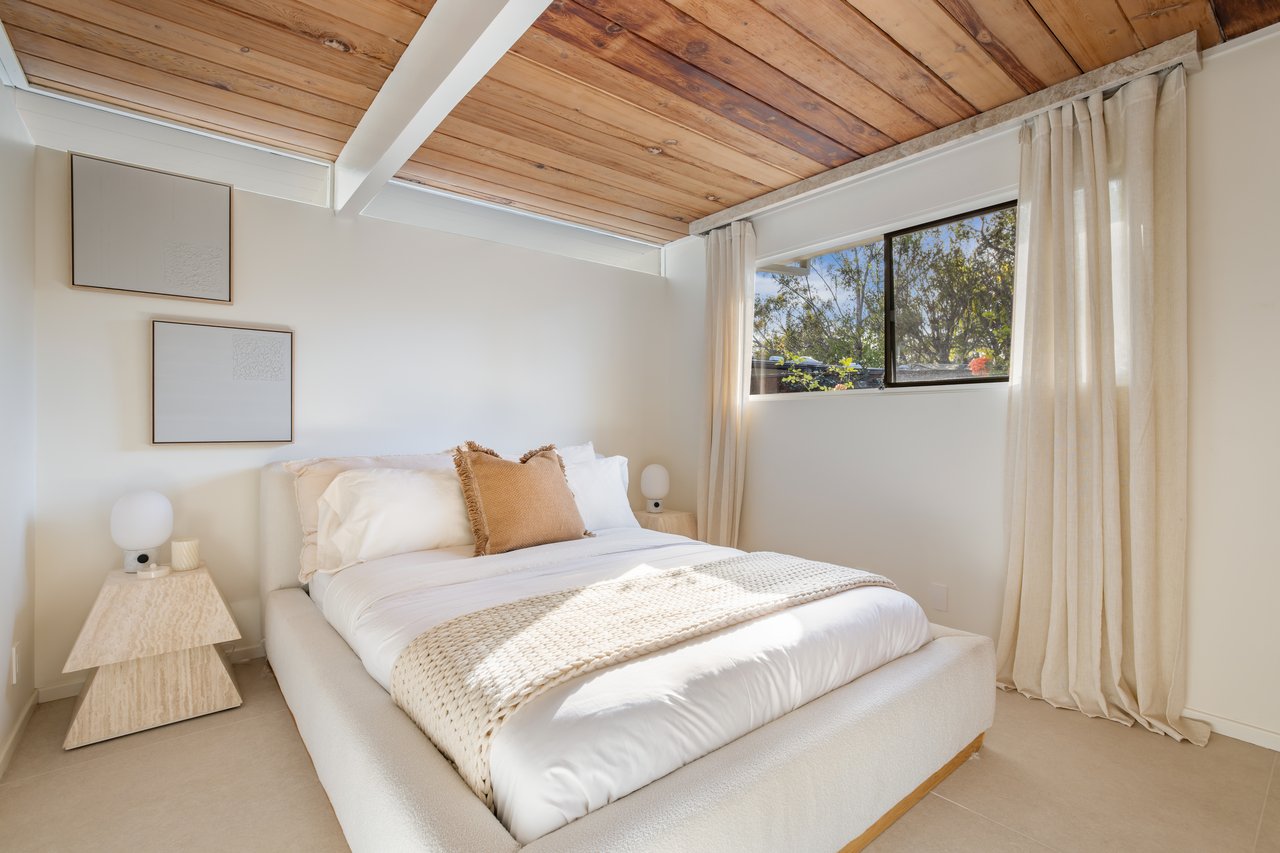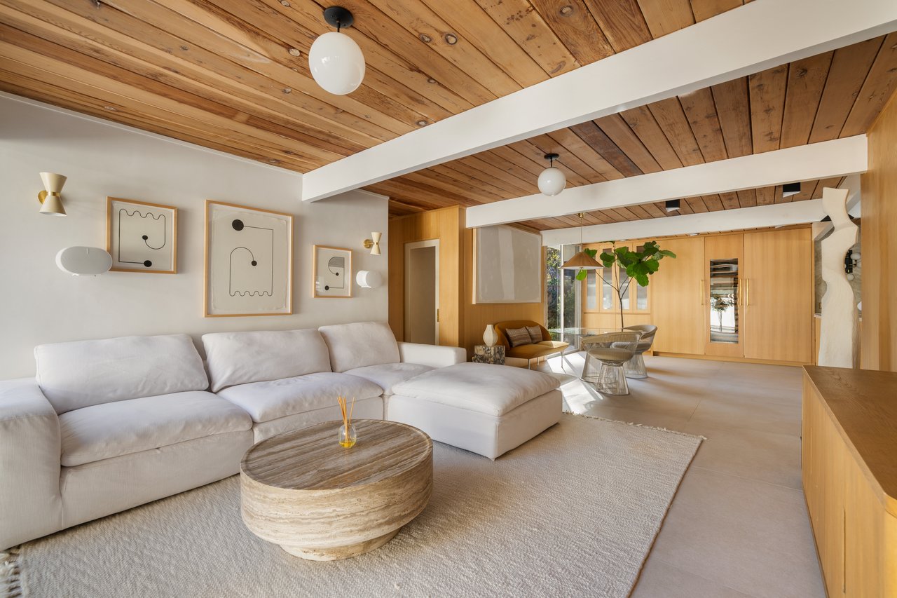 This Eichler, designed by A. Quincy Jones, has been meticulously reimagined for a modern life that values both form and flow. Hand-sanded redwood ceilings, Venetian plaster walls, and a seamless material palette carry through every space, merging warmth with precision.